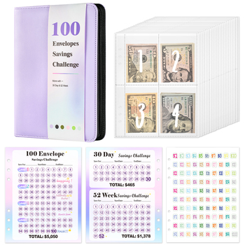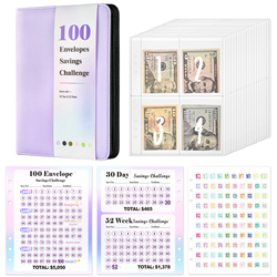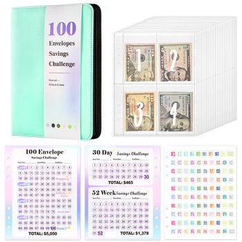Reemplazo de 25 hojas 100 sobres Ahorro de dinero Desafío A5 Carpeta de anillas Insertar preetiquetado 1-100 Bolsa de dinero en efectivo Bolsa con cremallera