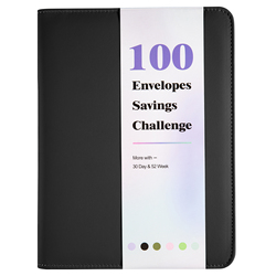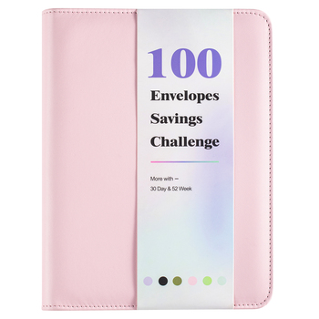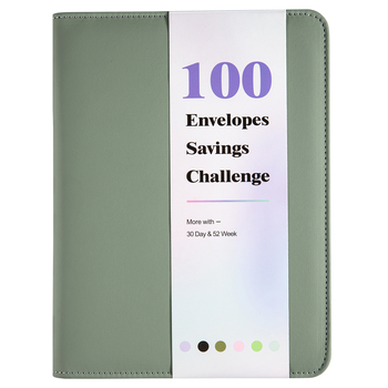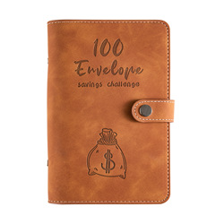 Alta calidad PU cuero Tapa dura 100 día ahorro desafío efectivo sobre presupuesto cuaderno A5 hoja suelta bolsa con cremallera al por mayor