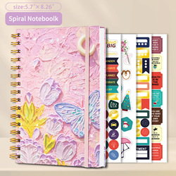 Fábrica A5 Bobina de doble metal de alta calidad Encuadernación en espiral Cuaderno Rosa Pintura al óleo Cubierta dura Banda elástica Diario